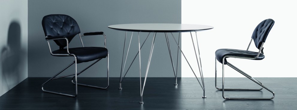 Hringlaga stofuborð sem er frábært til að eiga notalegar spjallstundir. Fæst einnig sem borðstofuborð eða borðstofuborð með tveimur stækkunarplötum.