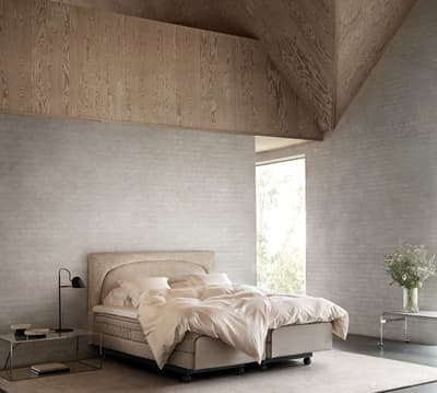 Njóttu einstakra þæginda í þessu goðsagnakennda lága DUX-rúmi með gagnvirkri tveggja laga gormabyggingu.