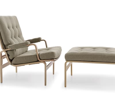 Skemillinn er hér í lengri gerð, í stíl við Domus-hægindastólinn úr viði.