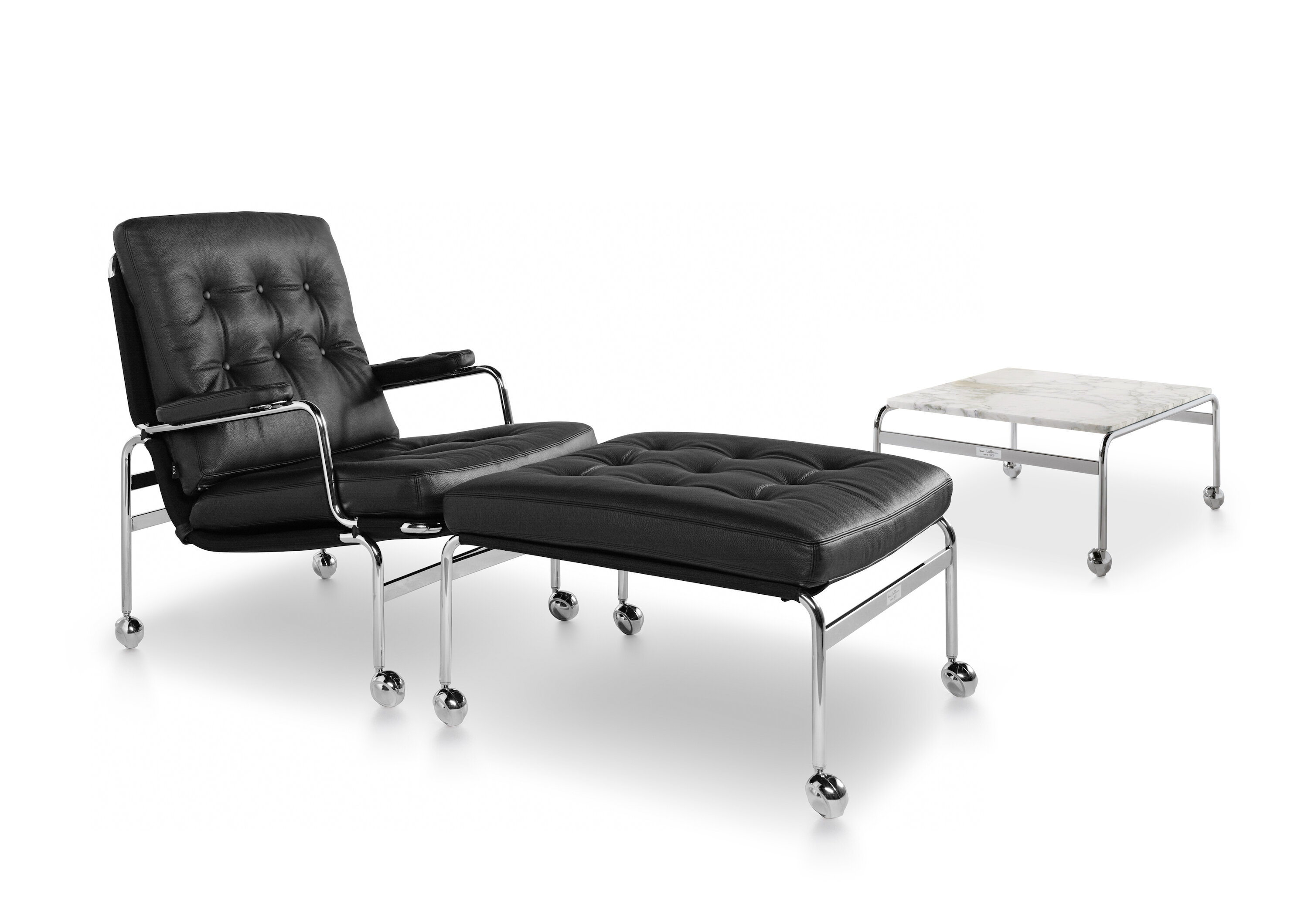 Sígildi Karin-hægindastóllinn var hannaður af Bruno Mathsson árið 1969, sem fyrsta húsgagnið sem varð til í samstarfi sem stóð yfir í nokkra áratugi. Þessi glæsilegi stóll er ómissandi hluti af þeirri vörulínu og er aðeins þægilegri en Karin-stóllinn, með fylltum sessum sem hvíla á krómhúðaðri grind með stoðneti.